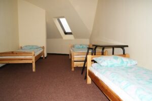 - 5 pokoi 5-osobowych,1 pokój 4- osobowy,8 pokoi 3- osobowych, 3 pokoje 2-osobowe łącznie 59 miejsc hotelowych.